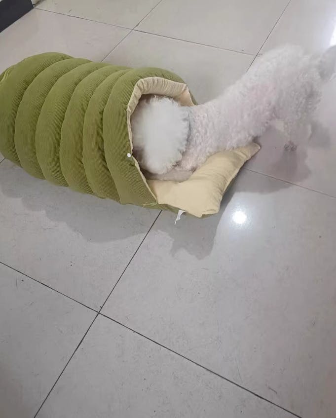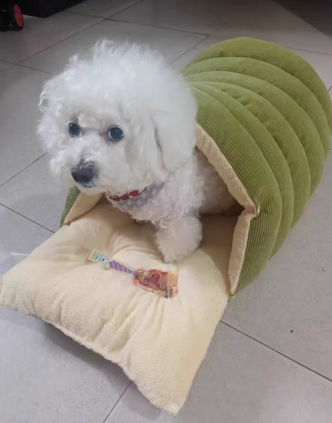 I bought this bed for my 4-month-old puppy, and he loves it! The inside is super soft and keeps him warm all night. The detachable cover is easy to wash and dries quickly.